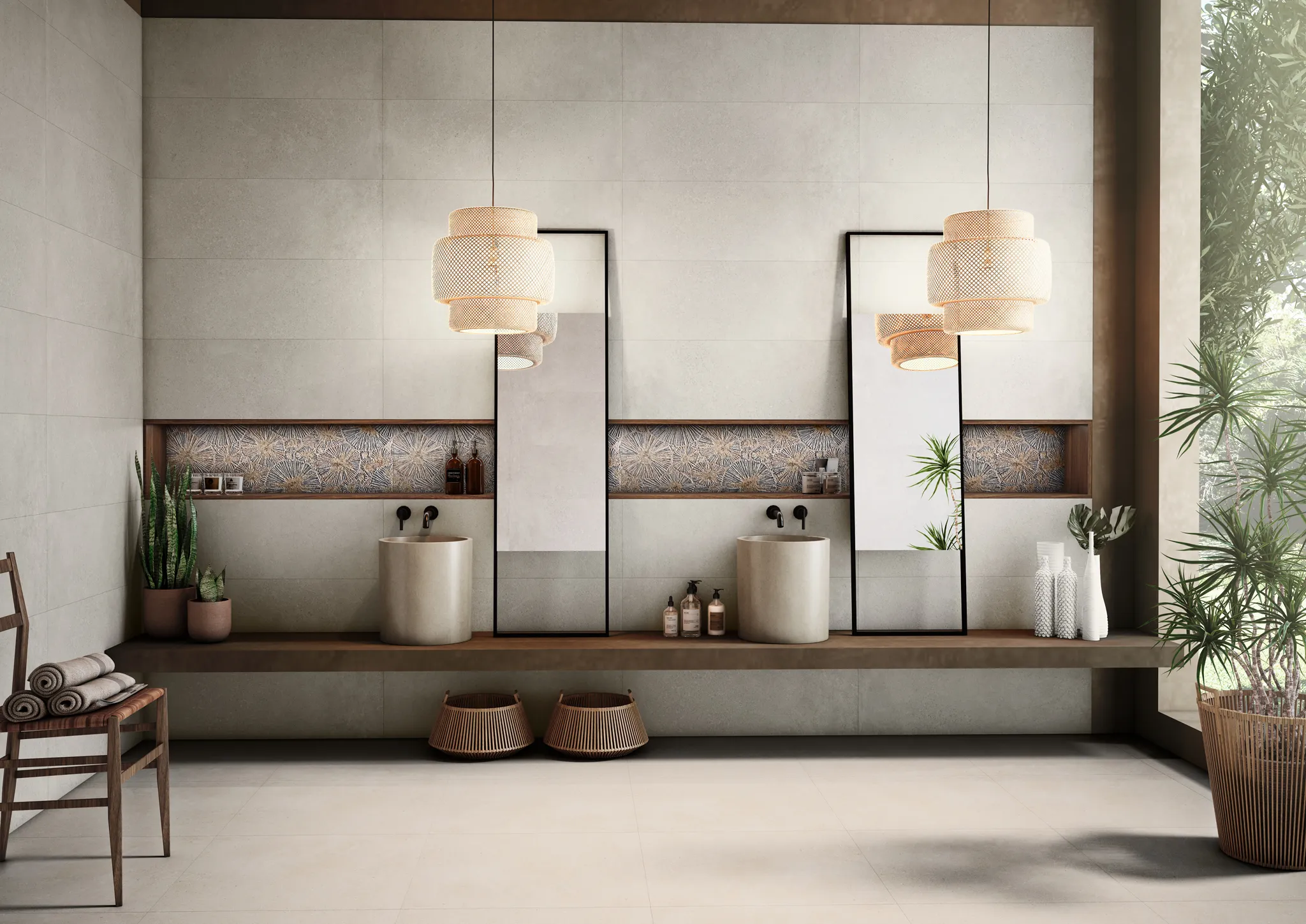 Its soft marfil (cream-beige) tones create a warm and sophisticated aesthetic, while the lappato finish provides a gentle sheen that highlights the natural movement within the design. The balanced texture makes it suitable for patios, terraces, and transitional indoor-outdoor spaces where both style and functionality are essential. Blending Marfil Lappato combines timeless elegance with practical durability for modern architectural projects.